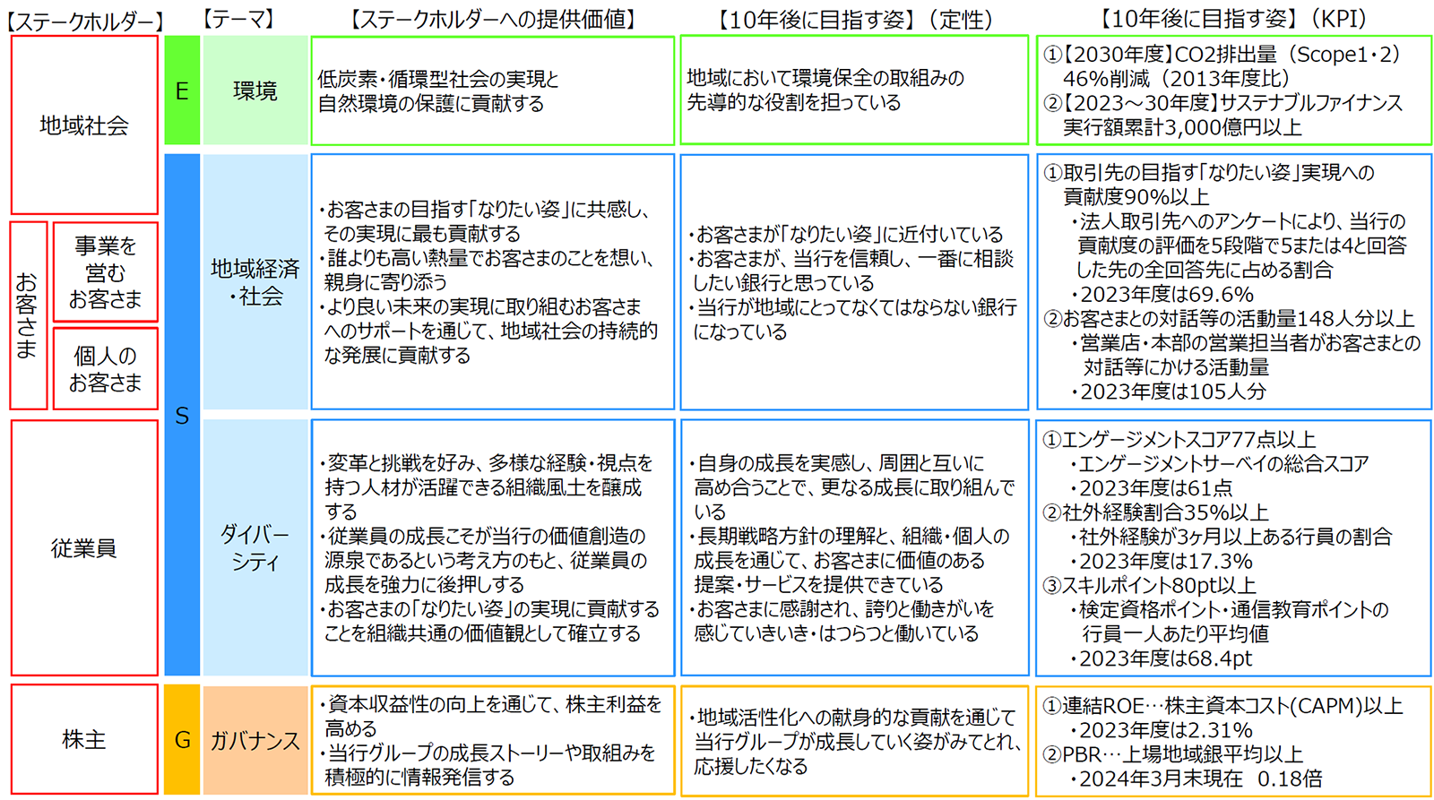 特に、環境への対応については、当行グループ自身の取組みに加え、取引先企業の脱炭素化のステップに応じたさまざまなニーズに対し、最適なソリューションを提供していくこととしております。
