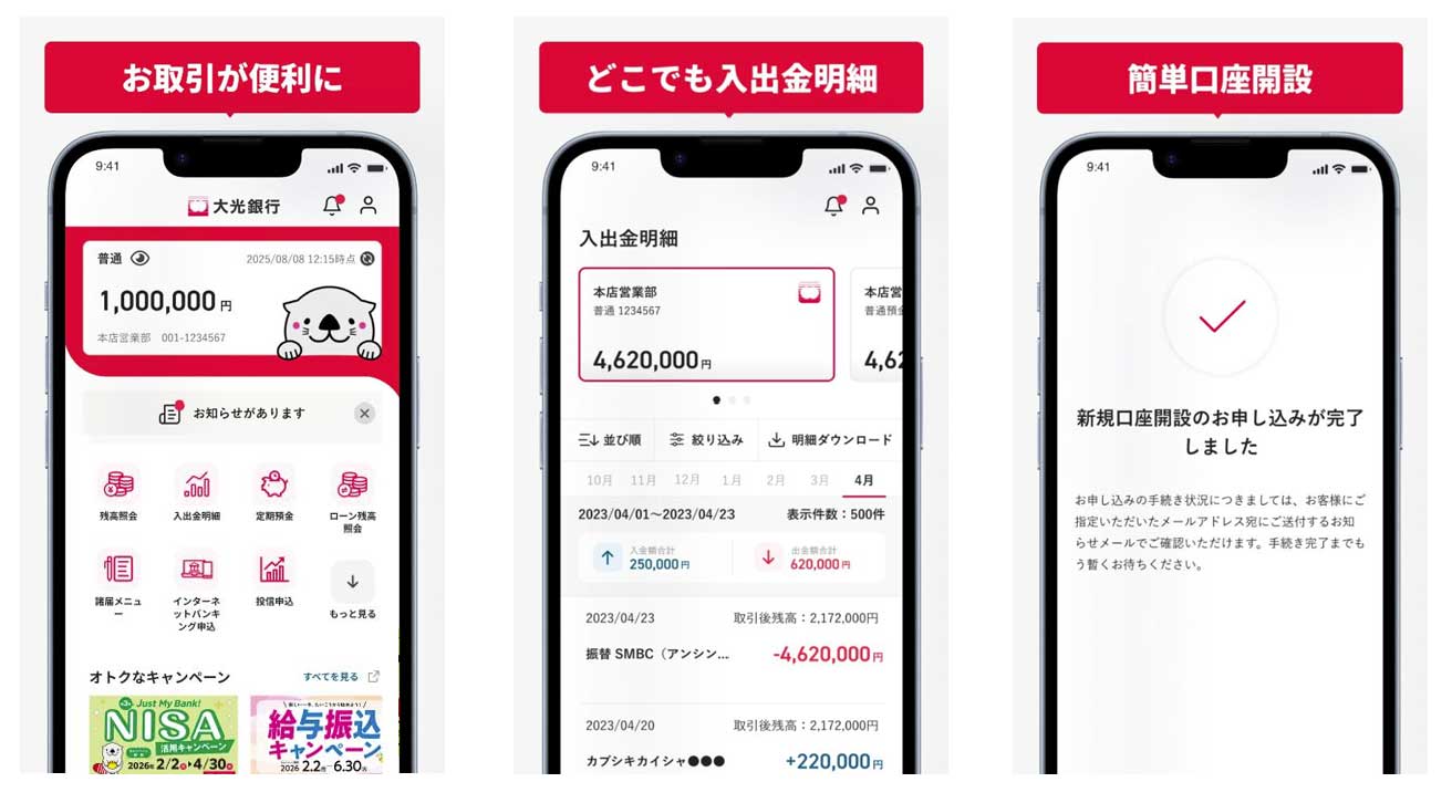 <「大光銀行アプリ~Myらっこ~」の画面イメージ>