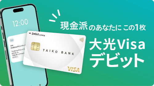お申込み手続き完了後、2週間ほどで簡易書留郵便(転送不要)によりICキャッシュカードと「たいこうパーソナルe-バンキング」のログインID・利用者番号をお送りさせていただきます。(紙の通帳は発行いたしません。)