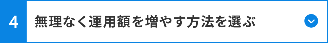 資産運用は、自分に合ったリスクで続けることが重要です。運用額を増やす場合でも、無理なく増やしていく方法を選びましょう。