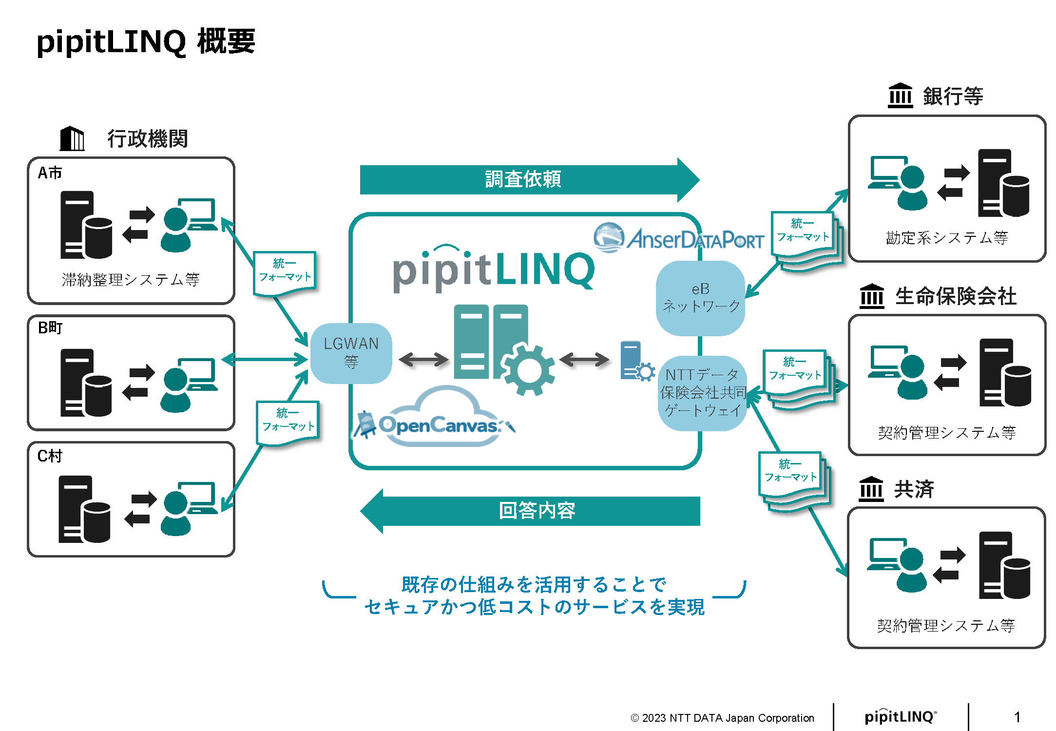 「pipitLINQ(ピピットリンク)」は、行政機関から金融機関への預貯金等の照会業務を電子化することで、双方の事務処理等にかかる業務負担を軽減できるサービスです。